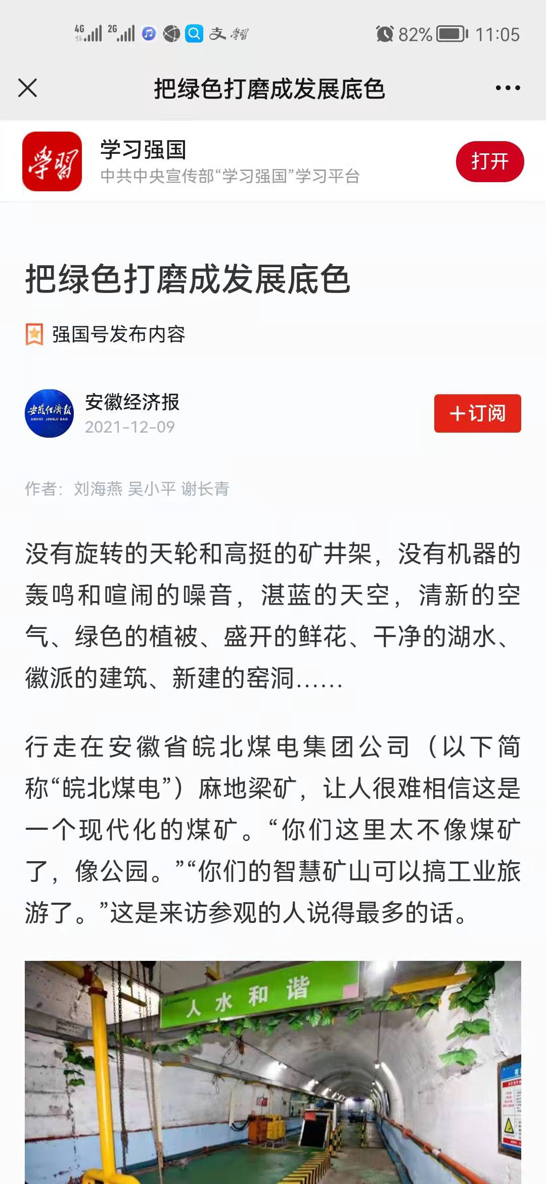 12月9日學習強國:皖北煤電把綠色打磨成發展底色