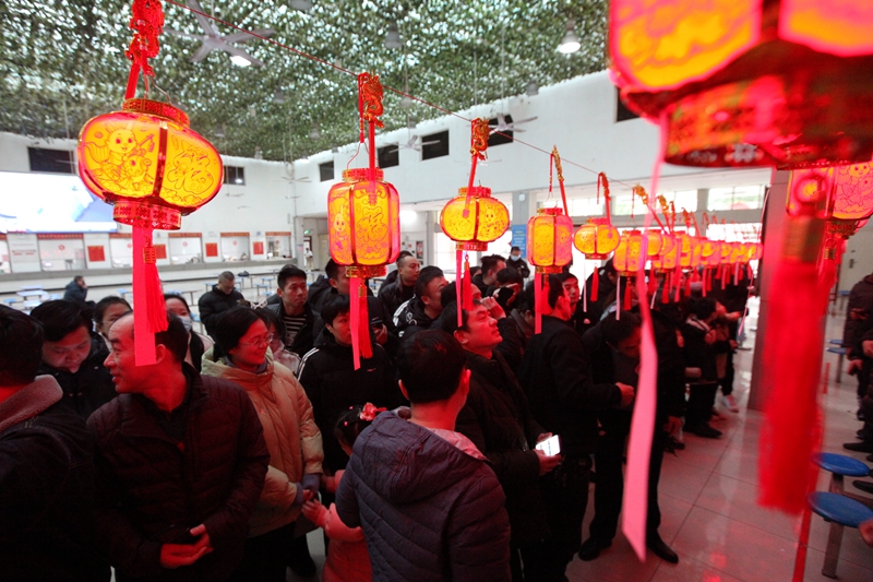 在猜燈謎現(xiàn)場,職工們或來回穿梭瀏覽燈謎,或三五成群的一起商量,或聚精會(huì)神地冥思苦想,處處洋溢著濃郁的節(jié)日氣氛。