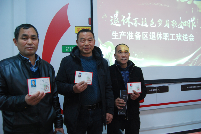 12月13日上午,恒源礦生產準備區在會議室專門為李祥坤、劉紹春、韓金光等8位退休職工舉辦了簡潔而溫馨的歡送儀式,并為他們送上了精心準備的紀念品,將對退休職工的關心關懷落到實處。